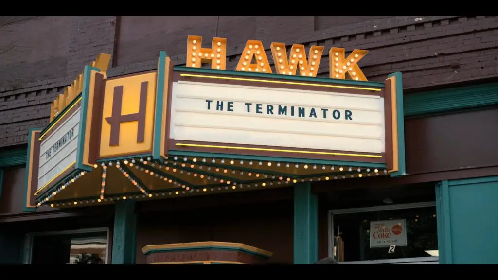 Stranger Things – Season 02 Episode 01 – Baby Fae’s Baboon [09:35]Terminator: Il titolo del primo episodio del franchise omonimo, diretto da James Cameron e interpertato da un indimenticabile Arnold Schwarzenegger, era in programmazione proprio in quel periodo, come si può facilmente vedere osservando il cartellone del cinema di Hawkins. Per la precisione il film uscì nelle sale americane il 26 ottobre 1984… giusto in tempo per Stranger Things 2!