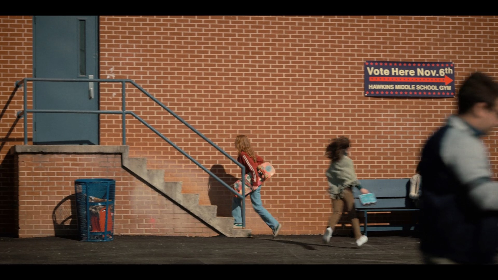 Reagan e Mondale: Nella scena dove Dustin e Lucas osservano l’arrivo di MadMax a scuola si può notare la presenza di un cartello elettorale nei pressi dell’ingresso: “Vote Here, Nov. 6“. Si tratta di un chiaro riferimento alle imminenti elezioni presidenziali degli Stati Uniti, che si sono tenute il 6 novembre 1984. Un’ottima notizia per i nostri eroi, visto che la scuola resterà probabilmente chiusa per un paio di giorni!